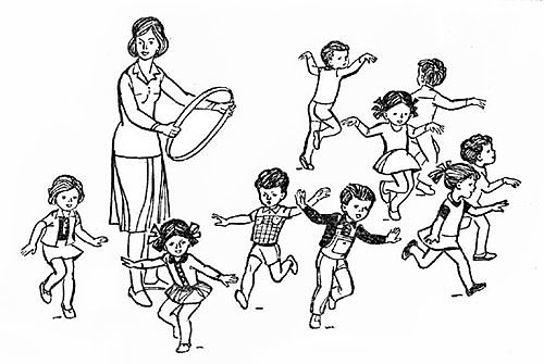 Цель: формирование умения детей бегать в разных направлениях, не наталкиваясь друг на друга; внимательно слушать сигнал и начинать движение по словесному сигналу.